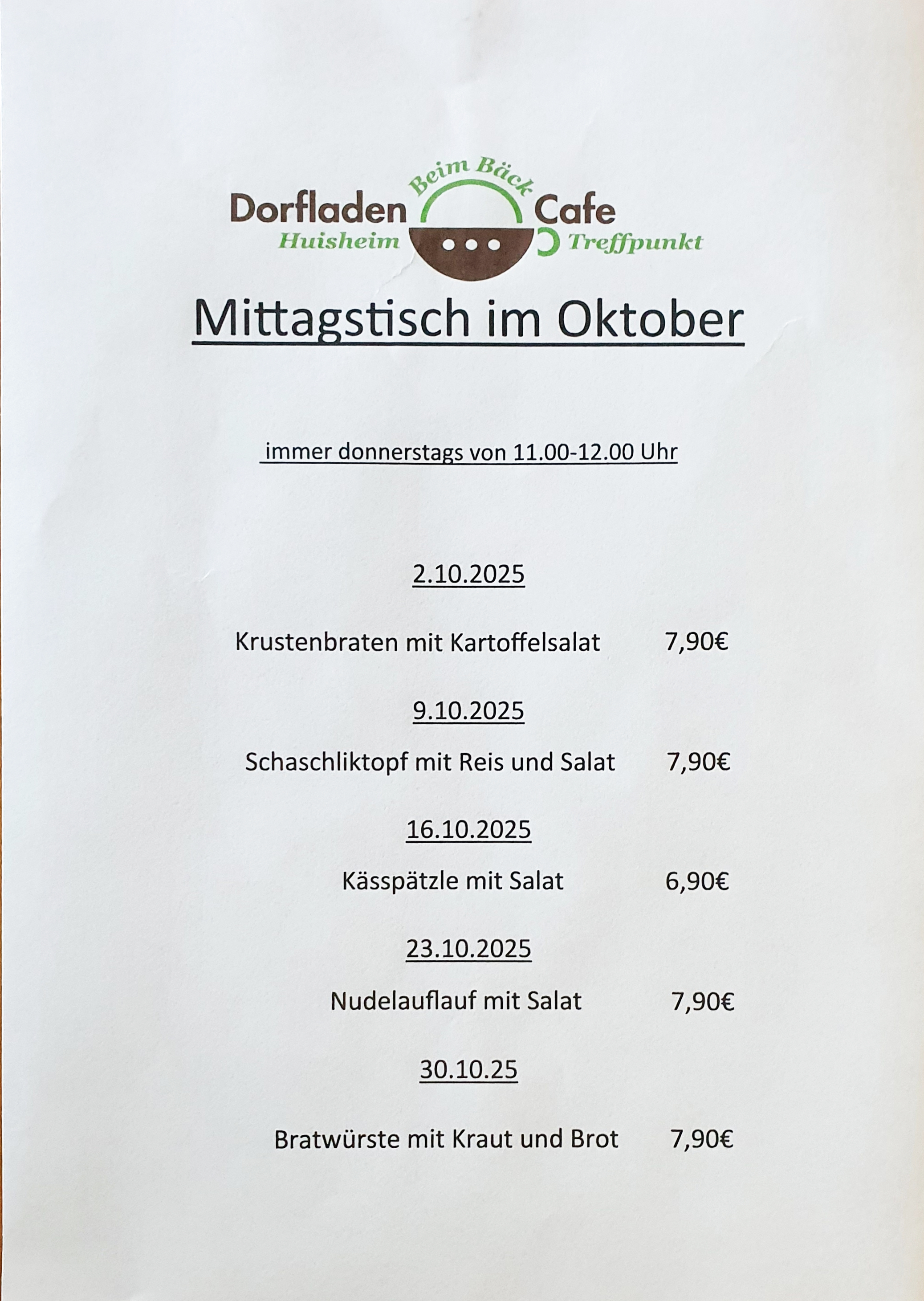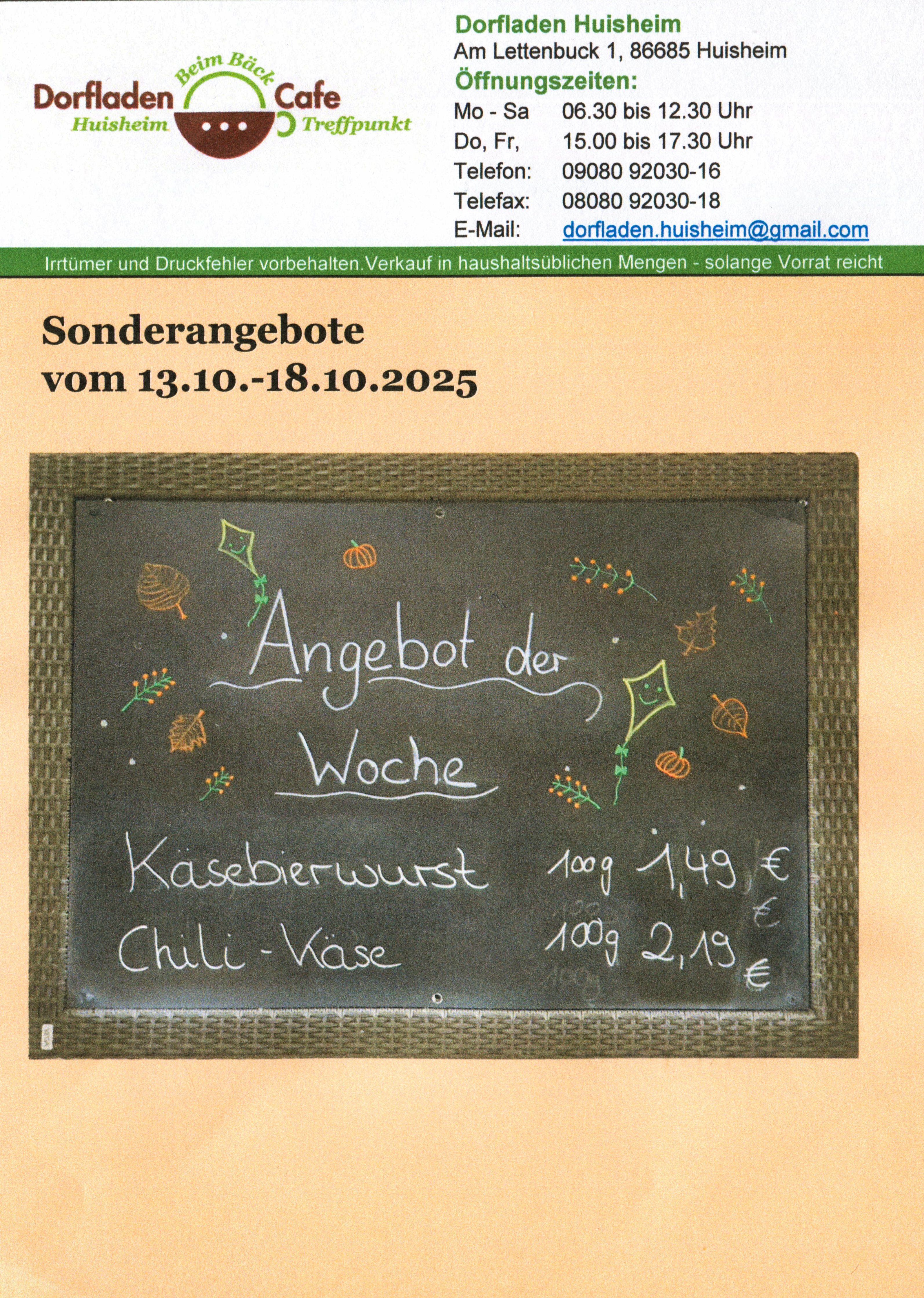 Das Dorfladenteam bietet für alle Mitarbeiter der ortsansässigen Firmen, für Durchreisende sowie für alle Liebhaber herzhafter bayrischer Schmankerl eine „Warme Theke“ von Dienstag bis Donnerstag an.